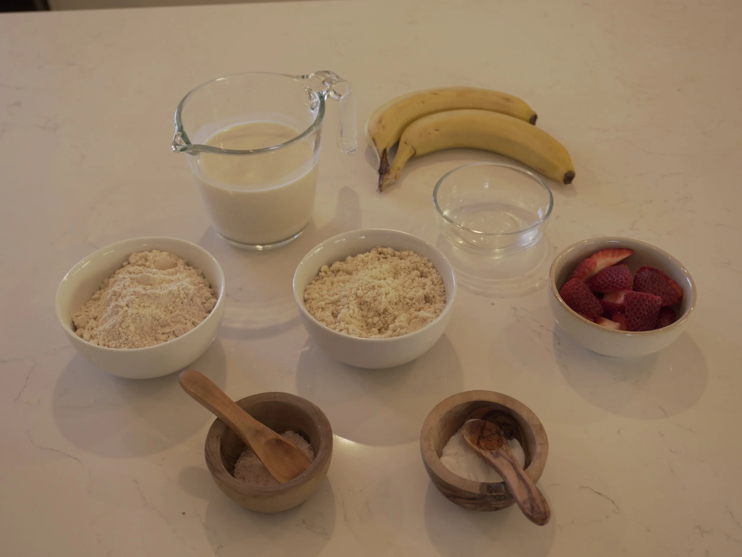 - Preheat pan over medium heat with coconut oil (can use butter if not vegan). When hot, start added pancake mixture to desired size of pancake. Cook for around 2 minutes.
